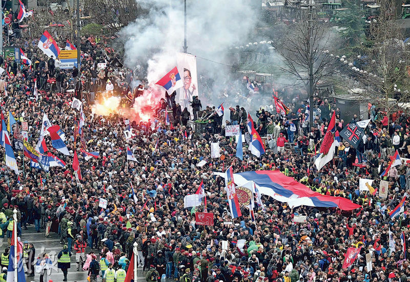【明報專訊】塞爾維亞首都貝爾格萊德上周六(15日)爆發由學生牽頭的反政府示威,抗議總統武契奇(Aleksandar Vucic)及其盟友貪污和管治不善,示威者要求武契奇落台。內政部估計約有10.7萬人參與,部分獨立媒體估算多達27.5萬至32.5萬人,堪稱該國2000年推翻總統米諾舍維奇以來最大規模示威,且包括極左派和極右派等不同政治光譜和階層人士,對2012年上台、由武契奇領導的塞爾維亞前進黨政府構成最大挑戰。示威期間,手機和互聯網絡受嚴重干擾;約50人因扔石、扔瓶子等小衝突受傷,22人被捕。