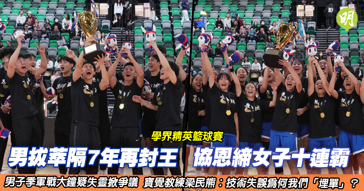 學界籃球|男拔萃隔7年精英賽再封王 協恩女子十連霸 男子季軍戰大鐘疑失靈掀爭議 (22:18)