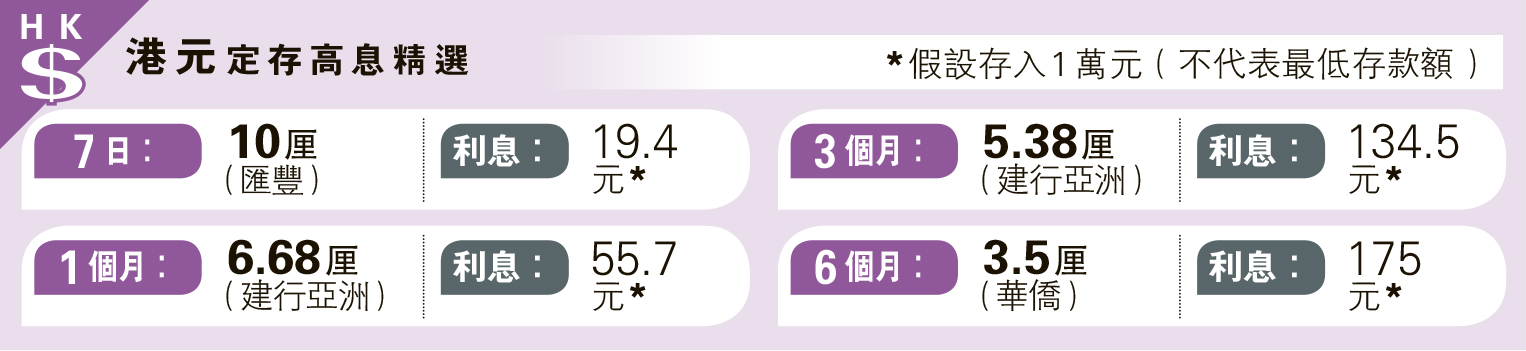 經濟 港元定存建行亞洲1個月年利率6.68厘 發佈於 7 個月 前 2025 年 3 月 20 日 By 明報 【明報專訊】建行亞洲銀行由2025年3月18日至6月30日,全新合資格客戶透過「e賬戶服務」開戶及存入10萬港元或以上,港元定存1個月年利率可獲6.68厘。 相關文章: Up Next 李澤鉅:經營環境難預測 限資本開支 長和去年基本少賺11% 遜預期 不要錯過 中汽協籲車企停發銷量周榜 避免擾亂市場 繼續閱讀 贊助商 猜你喜歡
