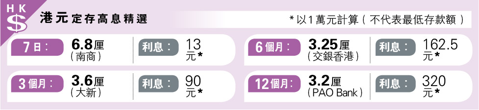 經濟 港元定存南商7日年利率見6.8厘 發佈於 7 個月 前 2025 年 3 月 21 日 By 明報 【明報專訊】港元定存高息精選7日年利率見6.8厘,為南商客戶以兌換資金開立「倍高息定期存款」之優惠年利率 (請看附圖) 相關文章: Up Next 交行去年多賺1% 勝預期 不要錯過 普徠仕Jai Kapadia三周前看好 港地產股股價至今升 繼續閱讀 贊助商 猜你喜歡