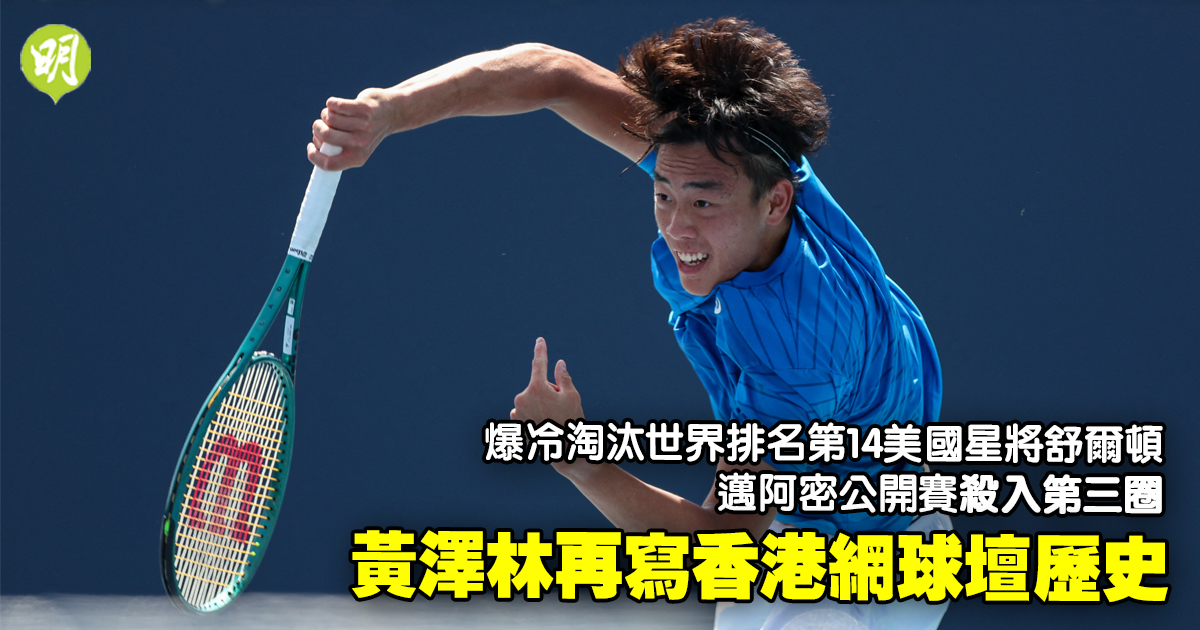 20歲港隊星將黃澤林(Coleman)今晨(23日)再寫歷史,在邁阿密網球公開賽男單次圈爆冷以盤數2:1淘汰世界排名第14位的22歲美國隊「二哥」舒爾頓(Ben Shelton),不但擊敗個人對賽最高排名對手,亦成為史上首名港將在ATP千分級世界巡迴賽殺入32強,將與世界排名第89的澳洲籍球手阿當禾頓爭入16強。