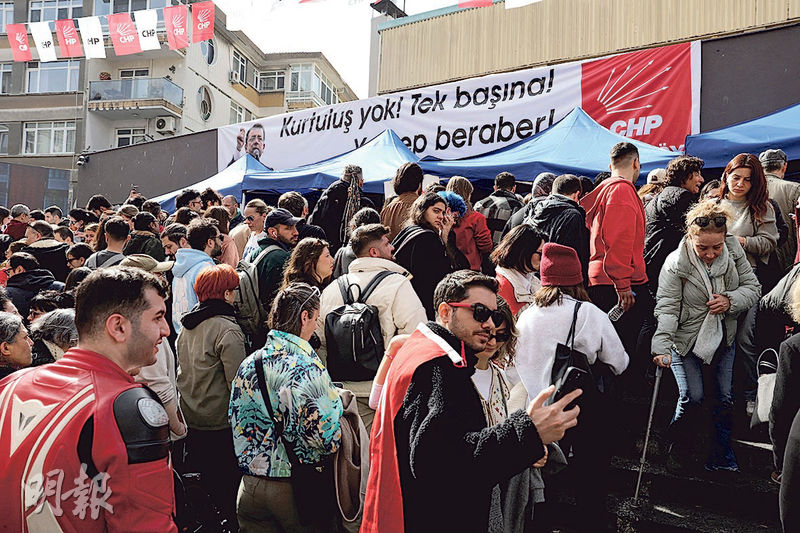 【明報專訊】土耳其最大城市伊斯坦布爾市長伊馬姆奧盧(Ekrem Imamoglu)周日(23日)被正式落案起訴貪污,關押候審,內政部同日稍後宣布以此為由將其免職。民望高企的伊馬姆奧盧被視為總統埃爾多安的最大政敵,其所屬共和人民黨(CHP)已內定他代表出選2028年總統大選。該黨周日如期在全國81省擺放5600個稱為「團結箱」的投票箱舉行初選,呼籲全民參與投票,冀壯大其認受性及反映民眾對拘捕檢控的不滿聲勢。