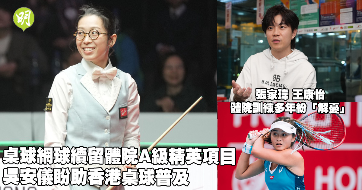 對於桌球和網球未來兩年繼續成為香港體育學院A級精英項目,其中香港桌球天后吳安儀今日(24日)表示,看到相關新聞後,自己都「鬆一口氣」,又期望香港桌球因而更容易普及化。