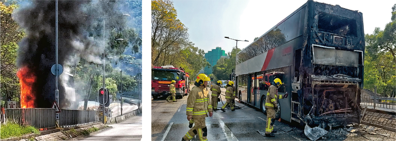 港聞 港鐵非載客巴士起火焚毁 發佈於 7 個月 前 2025 年 3 月 26 日 By 明報 【明報專訊】港鐵一輛非載客雙層巴士昨午2時許在大埔試車期間,駛至完善路與太和路交界燈位時車尾引擎位置突冒煙起火焚燒,車長發現立即停車並報警,火勢迅速蔓延,車尾陷於火海,大量濃煙湧上半空(左圖,網上圖片)。消防接報趕至現場,約半小時將火救熄,事件中無人受傷。巴士上層及下層車廂近車尾位置嚴重焚毁(右圖,林智傑攝),消防經初步調查相信機件故障過熱引起火警。港鐵表示,巴士已運回車廠檢查以了解事件原因。 相關文章:巴士火警 Up Next 警設控制中心應對七欖事故 被問防甩轆機制 文體旅局:恆常會議監察 不要錯過 「1+」審批制增藥廠競爭 有貴藥減價三成 繼續閱讀 贊助商 猜你喜歡 中環干諾道中大廈竹棚起火 據報有人被困升降機及便利店 (17:50) 青衣酒樓油煙槽起火冒煙無人傷 60人疏散 (13:11) 貨車銅鑼灣起火冒煙 消防開喉救熄 (14:58) 港鐵荃灣車廠火警 逾百名職員疏散無人傷 (11:24) 港鐵荃灣車廠火警 300職員疏散無人傷 (11:24) 九龍城唐樓疑電表短路冒煙 部分居民帶同寵物疏散 (19:34)