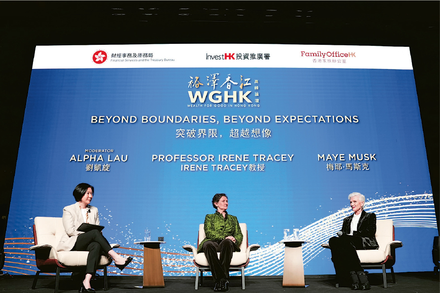 【明報專訊】第三屆「裕澤香江」今日舉行,噚晚先舉行高峰晚宴,邀請咗現任美國總統高級顧問、Tesla創辦人馬斯克嘅阿媽Maye Musk同牛津大學校長Irene Tracey對談,分享佢哋對女性領導力與傳承方面嘅見解,探討女性領袖喺推動商業、創新及社會發展嘅角色。