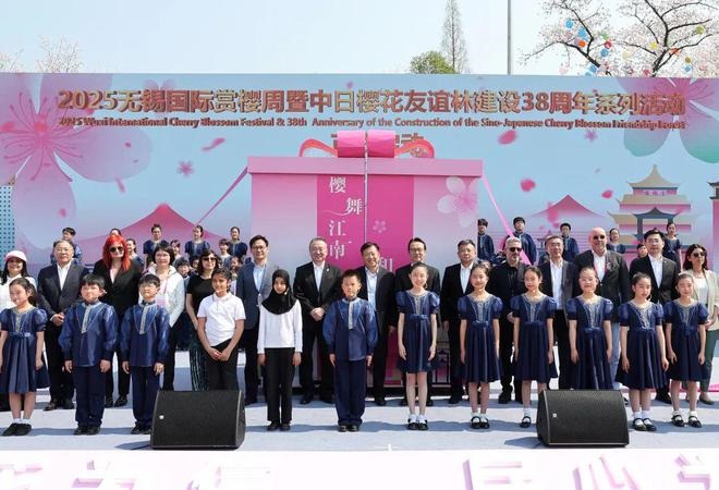 江蘇無錫國際賞櫻周暨中日櫻花友誼林建設38周年系列活動今(26日)舉行,江蘇副省長方偉、無錫市委書記杜小剛,日本駐華大使金杉憲治、日中共同建設櫻花友誼林保存協會會長新發田豐,以及多國駐上海總領館官員出席。與會嘉賓一起種下5棵櫻花樹,現場有展現無錫和日本文化的歌舞表演。