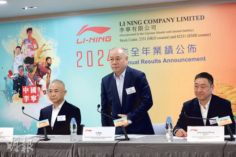 李寧少賺6%遜預期 末期息增12% 今年收入料持平 淨利潤率錄高單位數