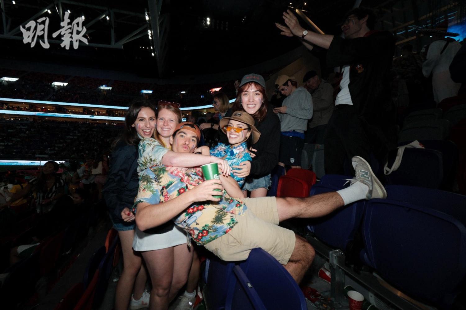 香港國際七人欖球賽第二日賽事今日(29日)在啟德體育園主場館舉行,今日為賽事中首日開啟天幕,不少觀眾表示,開啟天幕後感覺更好及景觀更漂亮,有外國遊客估算今日已花費約1000元買食物及飲品。
