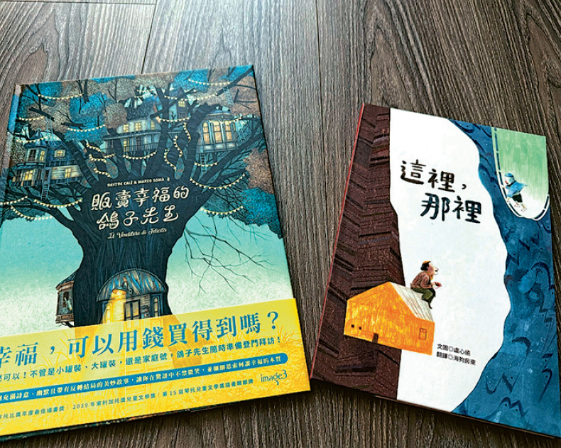 誠然「幸福」二字,對每個人來說,定義都不太一樣,意大利繪本大師Davide Calì在《販賣幸福的鴿子先生》一書中,用一罐又一罐的幸福,挑戰大家對「幸福」的理解。《這裡,那裡》的丹與阿奇,在自己的「這裡」,看着對方的「那裡」,在各自選擇了的生活中,找到當下的美好。