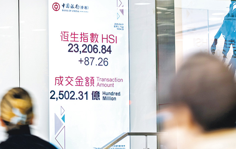 【明報專訊】市場靜待美國總統特朗普公布對等關稅內容,環球股市於周一全線下瀉後昨反彈,港股第二季開局,恒指亦最多升逾300點,惟收市升幅收窄至不足90點。大市成交略減至2500億元,惟北水流入增加逾5倍至近200億元 ,創近3周高。