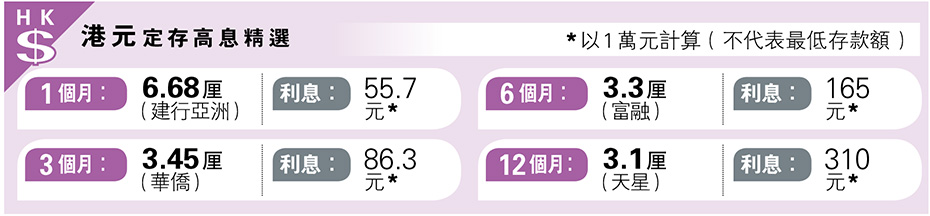 經濟 港元定存建行亞洲1個月年利率見6.68厘 發佈於 6 個月 前 2025 年 4 月 2 日 By 明報 【明報專訊】港元定存高息精選1個月見6.68厘,為建行亞洲新客戶透過「e賬戶服務」開戶並存入10萬元或以上之特惠定存年利率。 (請看附圖) 相關文章: Up Next 找換店13萬租景隆街百呎舖 呎租1300元 不要錯過 洪水橋4宗換地申請涉5地 獲延期至年底 繼續閱讀 贊助商 猜你喜歡