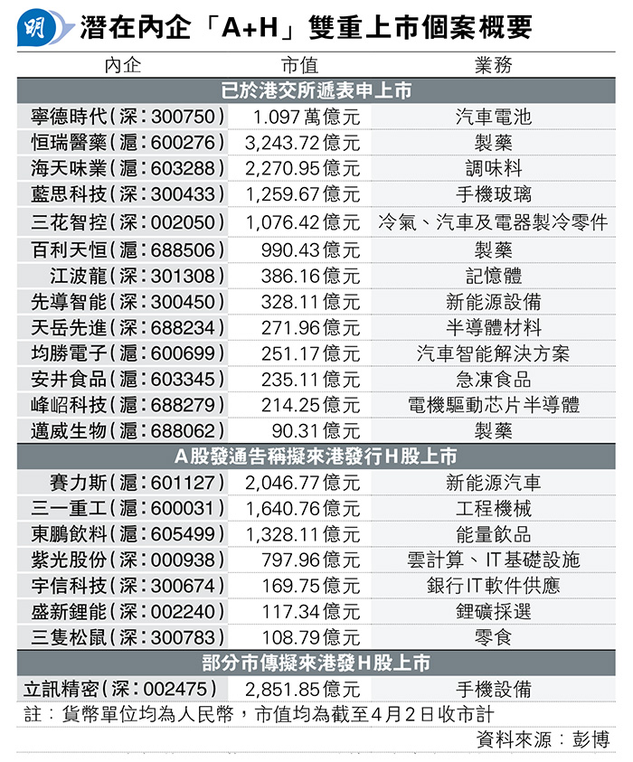歐振興表示,大型A股企業、內地龍頭企業以及來自中東及東盟國家的第二上市公司將成為今年本港IPO市場的重要動力。由於地緣政治不明朗因素加劇,或會促使更多在美國上市的中概股尋求來港上市。此外,人工智能、醫療及醫藥將為IPO熱門行業。他又表示,市場預料遞交上市申請後僅25日即獲得中證監備案的內地電池巨企寧德時代(深:300750),最快將在第二季完成上市。