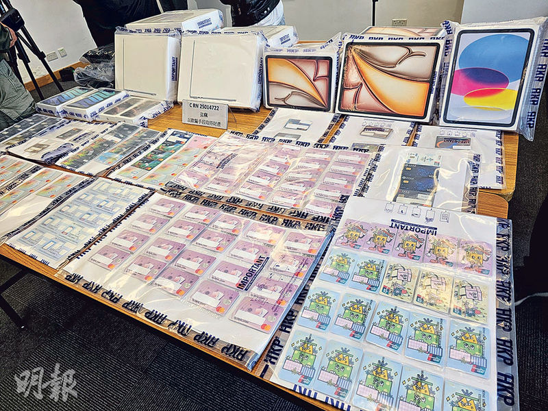 【明報專訊】警方周二(1日)在中環國際金融中心商場拘捕兩名男子,涉嫌盜用他人信用卡購買蘋果產品,警方並搜獲逾百張信用卡、扣帳卡及港澳通行證,共檢獲總值約15萬元的手提電腦及平板電腦。被捕兩名32及28歲男子報稱為學生,正被扣查。