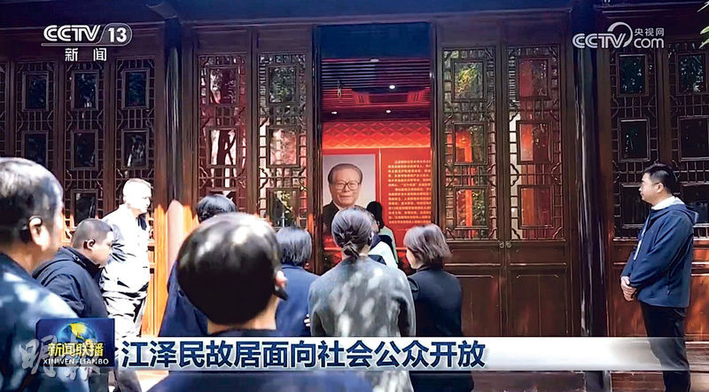 【明報專訊】清明節前夕,官方宣布已故中共中央總書記江澤民位於江蘇揚州的故居正式面向社會公眾開放,消息一經曝光,可預約日期迅即全部爆滿。故居昨日組織參觀活動,江澤民親屬和生前身邊工作人員代表,以及江蘇省幹部群眾代表等瞻仰江澤民故居,並參觀江澤民生平陳列展。