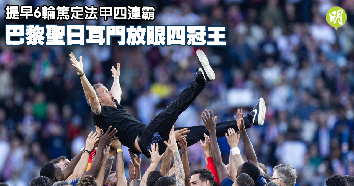 巴黎聖日耳門去夏雖有頭號球星基利安麥巴比離隊,但今季表現未受影響,球隊已奪法國超級盃之餘,今晨更在法甲半力出擊留力周中的歐聯8強首回合下,仍在主場憑19歲鋒將迪斯亞杜伊於55分鐘一箭定江山,以1球小勝昂熱,賽後28戰得74分兼未嘗敗績,領先次席的摩納哥多達24分,提早6輪篤定四連冠霸業,隊史第13次奪得聯賽錦標,續刷新法甲歷史,亦是今季歐洲五大聯賽率先封王的球隊。