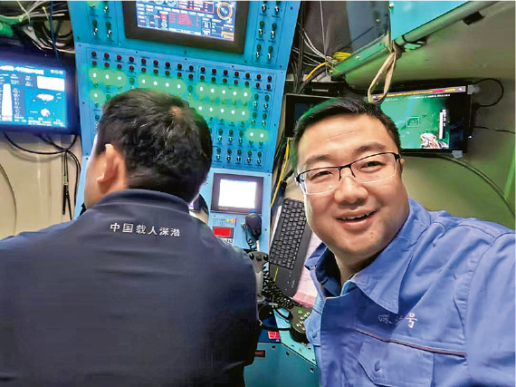 【明報專訊】遠洋深海並非人人可達,立法會選委界別議員尚海龍(右)上月化身科學家登上國家載人潛水器「蛟龍號」參與深海科研任務,於太平洋海域下潛逾1500米,協助採集生物及礦物樣本等。尚海龍同Emily講,難得有機會一窺深海、了解相關知識,形容係「另一個世界」。
