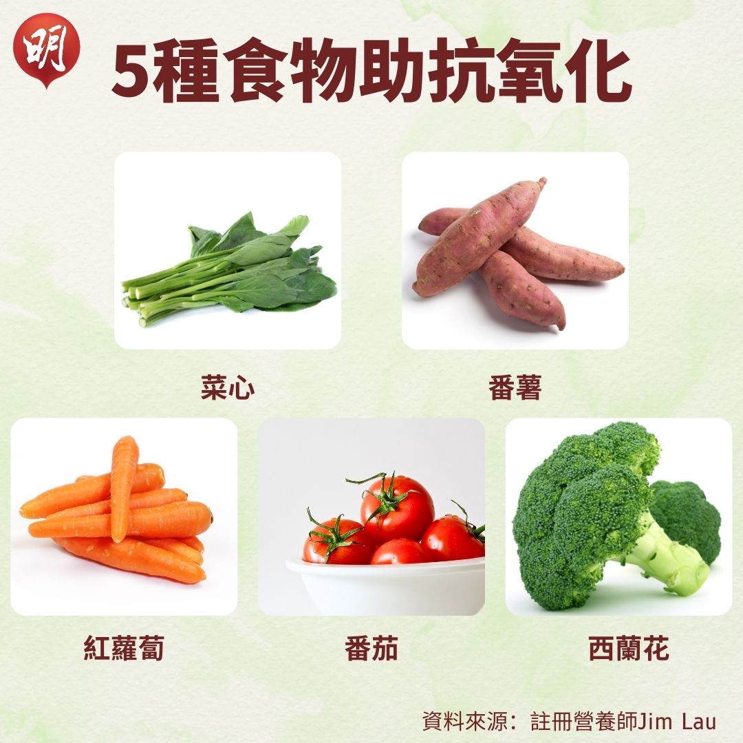 抗氧化飲食與健康息息相關,可中和自由基、減緩氧化壓力對身體細胞的損傷,註冊營養師Jim Lau表示街巿常見的食材亦含抗氧化功效,他介紹5種抗氧化食物,並講解抗氧化食物好處。