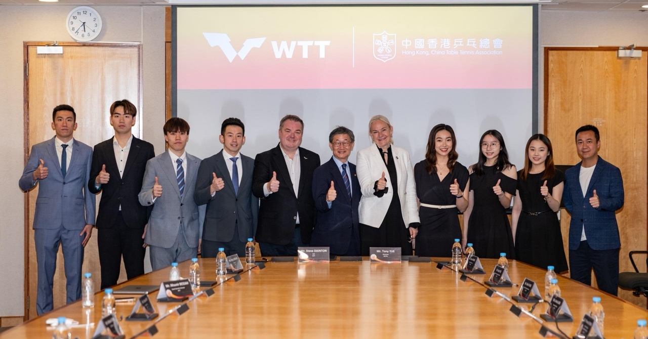 香港乒總今宣布與WTT達成長期協議,將主辦大型WTT賽事,首場賽事為2025年的年終賽,將於12月10至14日於紅館舉行。乒總主席余國樑上周四與WTT行政總裁Steve Dainton簽署,黃鎮廷等一眾港乒成員都有出席以示支持。