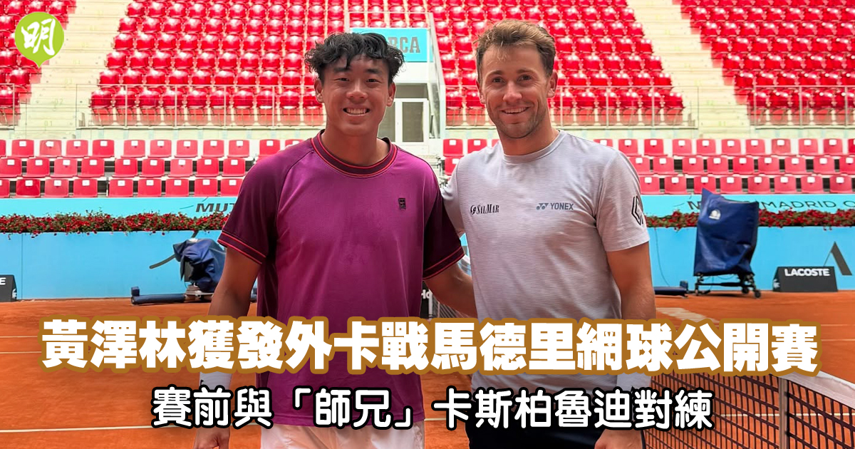 網球︱黃澤林獲發外卡戰馬德里公開賽 明日首圈鬥意籍小將捷拿 賽前與「前世二」魯迪對練 (17:28)