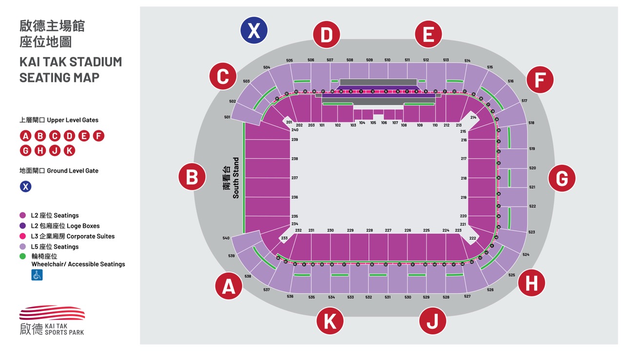 啟德體育園亦提醒,座位圖僅供參考,因實際場地布局、整體設計及觀眾觀看角度和效果,需視乎活動主辦方的舞台設計而定。