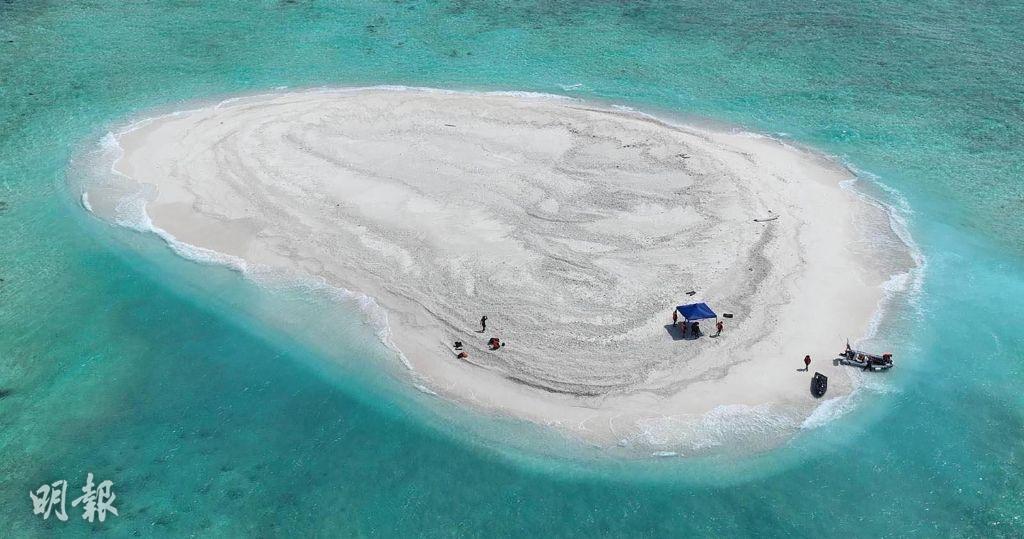 鐵線礁(Sandy Cay)和牛軛礁(Whitsun Reef)位於南海的南沙群島,是中菲多次產生爭議的區域。(央視/新華社)