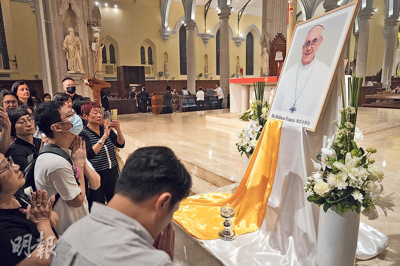 【明報專訊】教宗方濟各上周一(21日)離世,天主教香港教區昨晚在位於中區堅道的聖母無原罪主教座堂舉行追思彌撒,前特首曾蔭權及林鄭月娥均有出席。在場人數眾多,部分出席者獲安排到旁邊大樓的房間觀看直播。