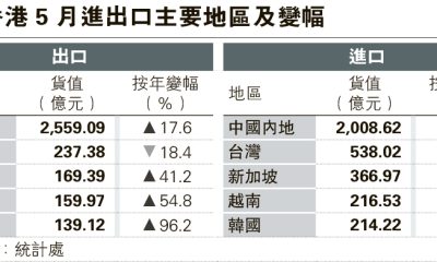 主要貨品中,3月「辦公室機器和自動資料處理儀器」的進出口均大增約1.3倍;「電動機械、儀器和用具及零件」進出口亦升逾一成。不過,「通訊、錄音及音響設備和儀器」出口則下降7.3%,進口僅升0.7%。