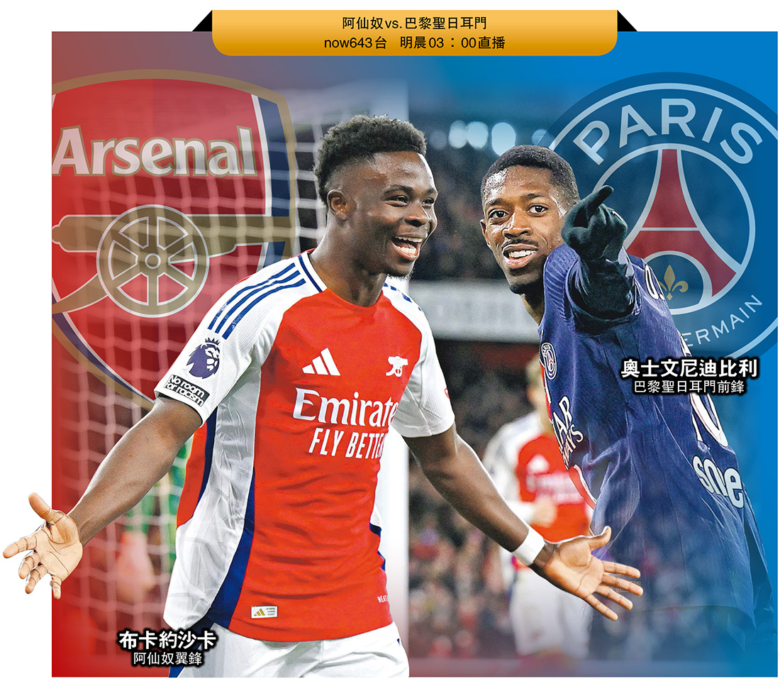 【明報專訊】歐聯明晨舉行阿仙奴主場碰巴黎聖日耳門(PSG)的4強首回合比賽,亦是兩軍西班牙籍主帥阿迪達與安歷基合演的「巴塞隆拿師兄弟內訌戰」,惟勝負關鍵勢在料復任正選的主隊翼鋒布卡約沙卡,以及今季被改造為箭頭的奧士文尼迪比利,能否及時回復最佳狀態?