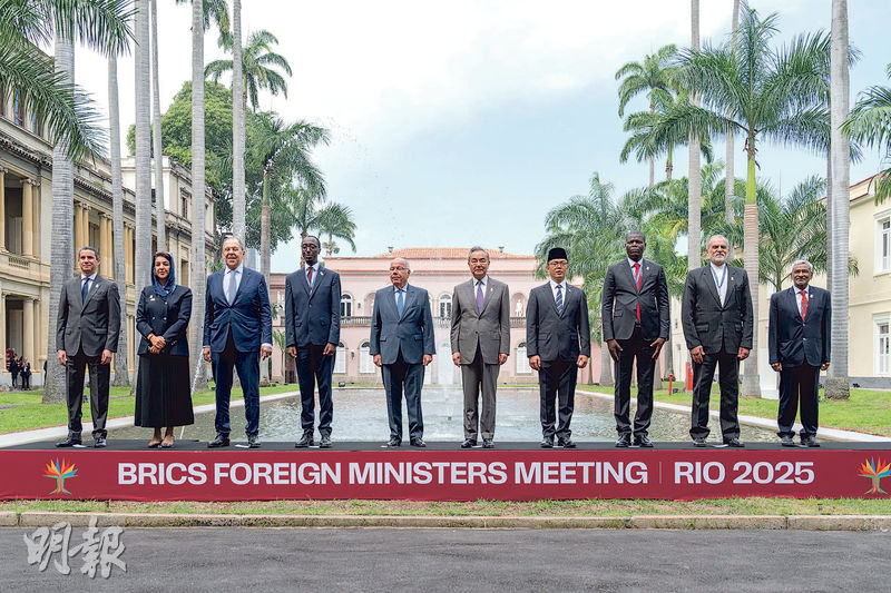 【明報專訊】巴西里約熱內盧時間4月28日,金磚國家外長會晤在當地舉行,中國外長王毅就堅持多邊主義、維護多邊貿易規則闡明中方立場。他直言「維霸」(維護霸權)和「反霸」的較量在全球展開;認為美國長期從自由貿易中大量獲益,現在竟拿關稅當籌碼向各國漫天要價,如果選擇默不作聲、妥協退縮,只會讓霸凌者得寸進尺。