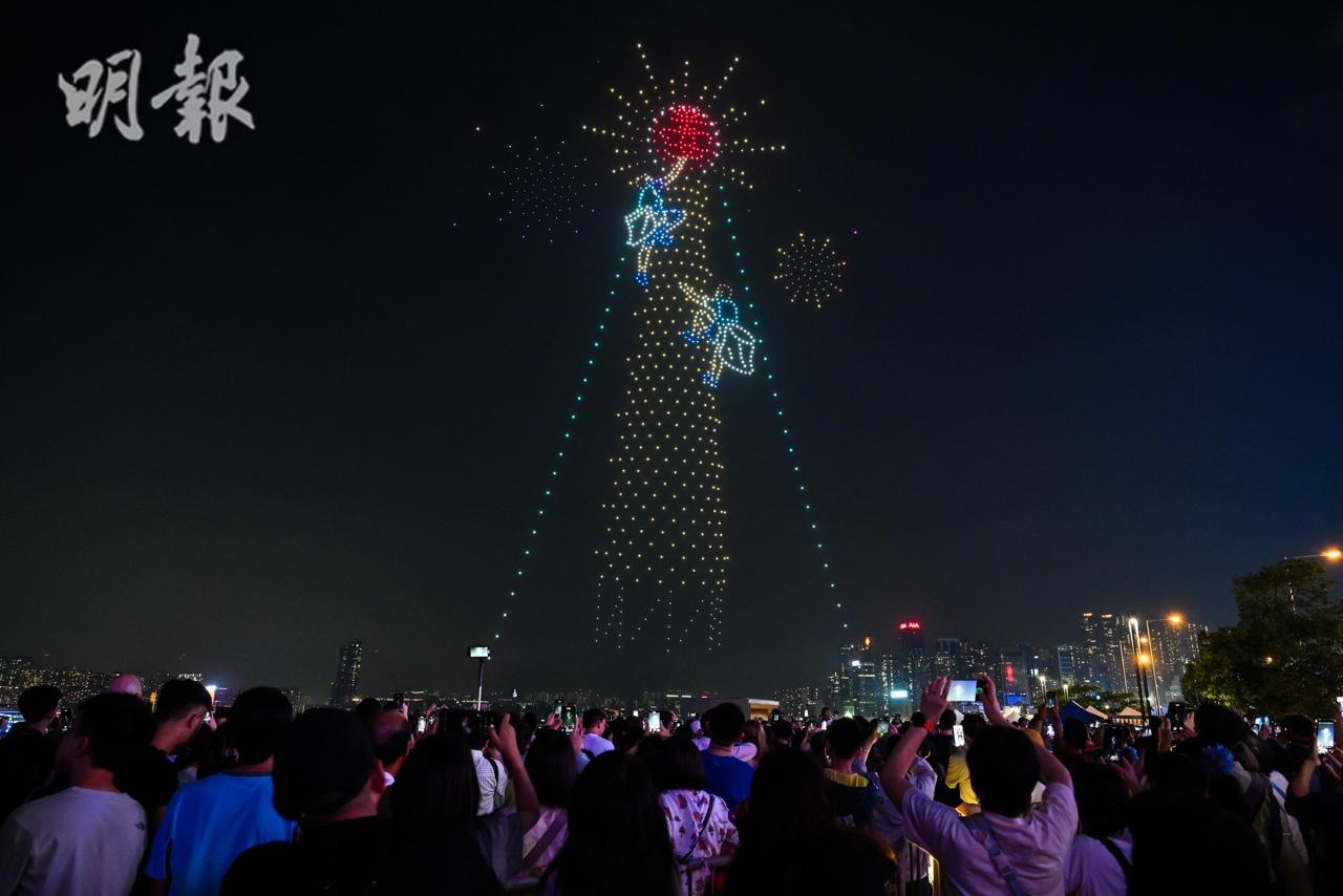 旅發局今晚8時在灣仔海濱場地對出海面,以1000架無人機拼湊出天后誕、譚公誕及長洲太平清醮等非遺節慶主題圖案,包括長洲太平清醮搶包山比賽,表演歷時12分鐘,不少人一早到場霸位。