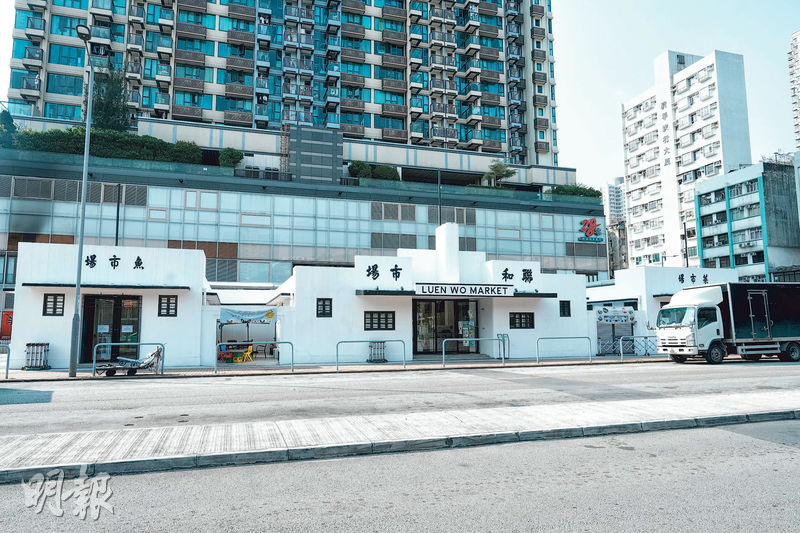 【明報專訊】粉嶺的聯和市場上世紀由民間集資而設,源於不忿其他墟巿呃秤,落成後一直是區內最重要的墟市,興盛一時無兩,除了賣魚菜還是鄉民聚腳的娛樂場地,例如戶外播電影。不過巿場2002年結業,荒廢至今近廿年,其間成為電影《每當變幻時》取景點,直至被納入「活化歷史建築伙伴計劃」,才得以保留。負責施工復修的團隊指出,聯和市場留下資料不多,建築圖則亦遺失,團隊入場時發現失修嚴重,只能「摸着石頭過河」復修,包括保留市場「E」形的對稱佈局、雙坡屋頂,重建正門簷篷上方的方形立柱、旗杆及招牌等,惟英文招牌因結構問題無法原址安置,成為團隊眼中的美中不足。
