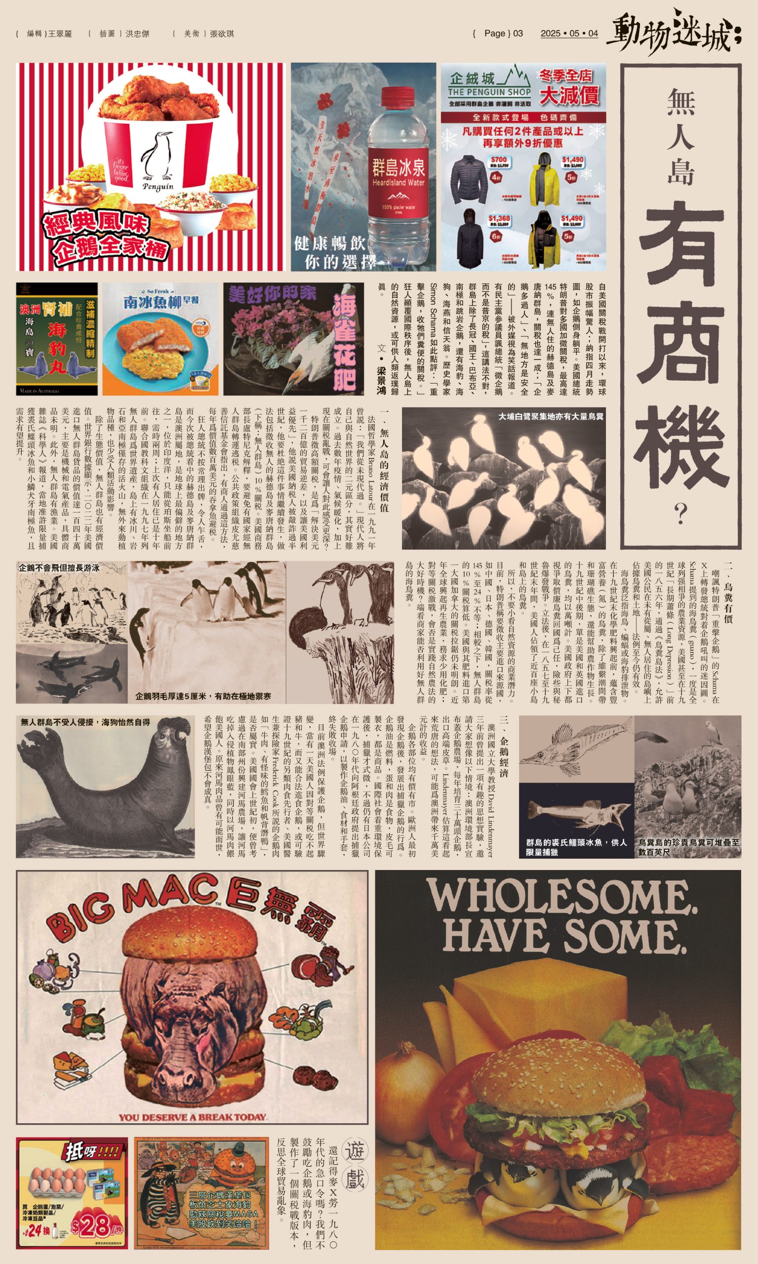 還記得麥X勞一九八○年代的急口令嗎?我們不鼓勵吃企鵝或海豹肉,但製作了一個關稅戰版本,反思全球貿易亂象。