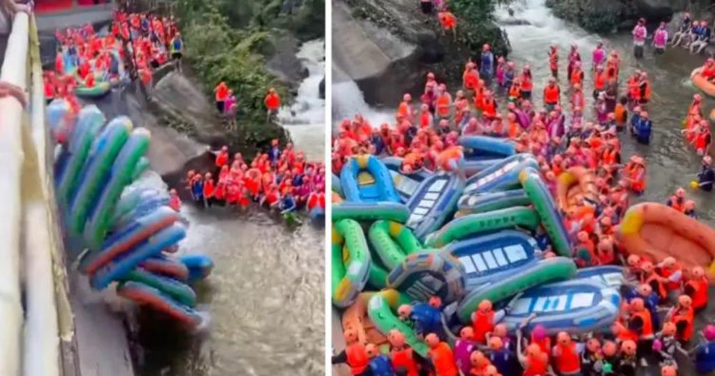 廣東清遠黃騰峽生態旅遊區漂流項目本月2日出現「搶船大戰」,網上片段見到,景區漂流出發地點有很多人,身穿橙色救生衣的遊客聚集在水中,十多艘充氣漂流船被工作人員從高處的裝卸車上一併推下,接連墜入水中。船體堆疊在淺水區,遊客間蜂擁搶船,場面混亂。有遊客抱怨,在烈日下暴曬數小時,仍然無法輪到自己漂流,要求退票。