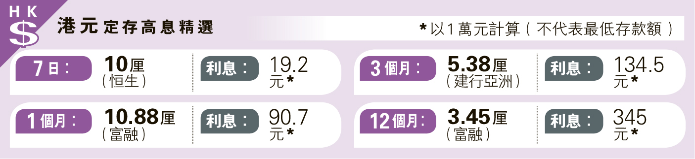 經濟 港元定存客戶開立新戶口才獲高息 發佈於 5 個月 前 2025 年 5 月 9 日 By 明報 【明報專訊】港元拆息急跌,1個月拆息跌至2.09厘見逾兩年半新低,1年定存年利率普遍下降低於3厘,而存戶要開立新戶口才獲得定存高息。 相關文章: Up Next 許濤接手徐敬YLH股權 變身TVB主要股東 不要錯過 房貸利率普遍減1/4厘 針對出招穩樓市 繼續閱讀 贊助商 猜你喜歡