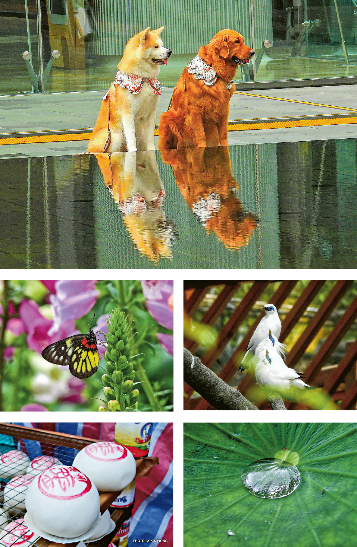 得獎信旁是黃乾生於不同年份去「香港花卉展覽」的入場券,Patrick說爸爸每年都會參加花卉展的攝影比賽,拍攝現場盛放的花朵,並為香港小姐造像。黃乾生喜捕捉人、植物和動物的神髓,Patrick形容黃影的都是「微細的東西」。記者看今次相展的作品,有黃乾生在深圳洪湖公園拍下的荷葉——荷葉上是晶瑩剔透的水滴,水滴在黃的鏡頭下的樣子像凝固了似的,亦有報喜斑粉蝶停駐花苞的模樣。黃乾生看來很喜歡記錄大自然?「他工作的銀行在山頂,他以前上班要行山」,Patrick說黃乾生行山會順道拍攝周圍的生態,久而久之累積了很多靜態的植物寫真。