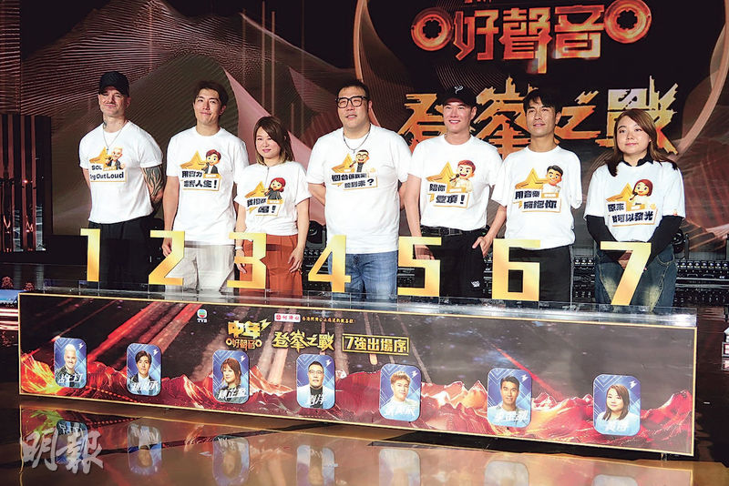 【明報專訊】無綫歌唱比賽節目《中年好聲音3登峯之戰》今晚於啟德體藝館舉行,7強參賽者爭取冠軍及10萬元獎金。昨日7強按照累積總分數,自行揀選出場次序。總分最高的黃博選壓軸出場,最低分占士丁丁打頭陣。2至6的出場者順序為趙浚承、陳芷盈、劉洋、張與辰及李金凱。