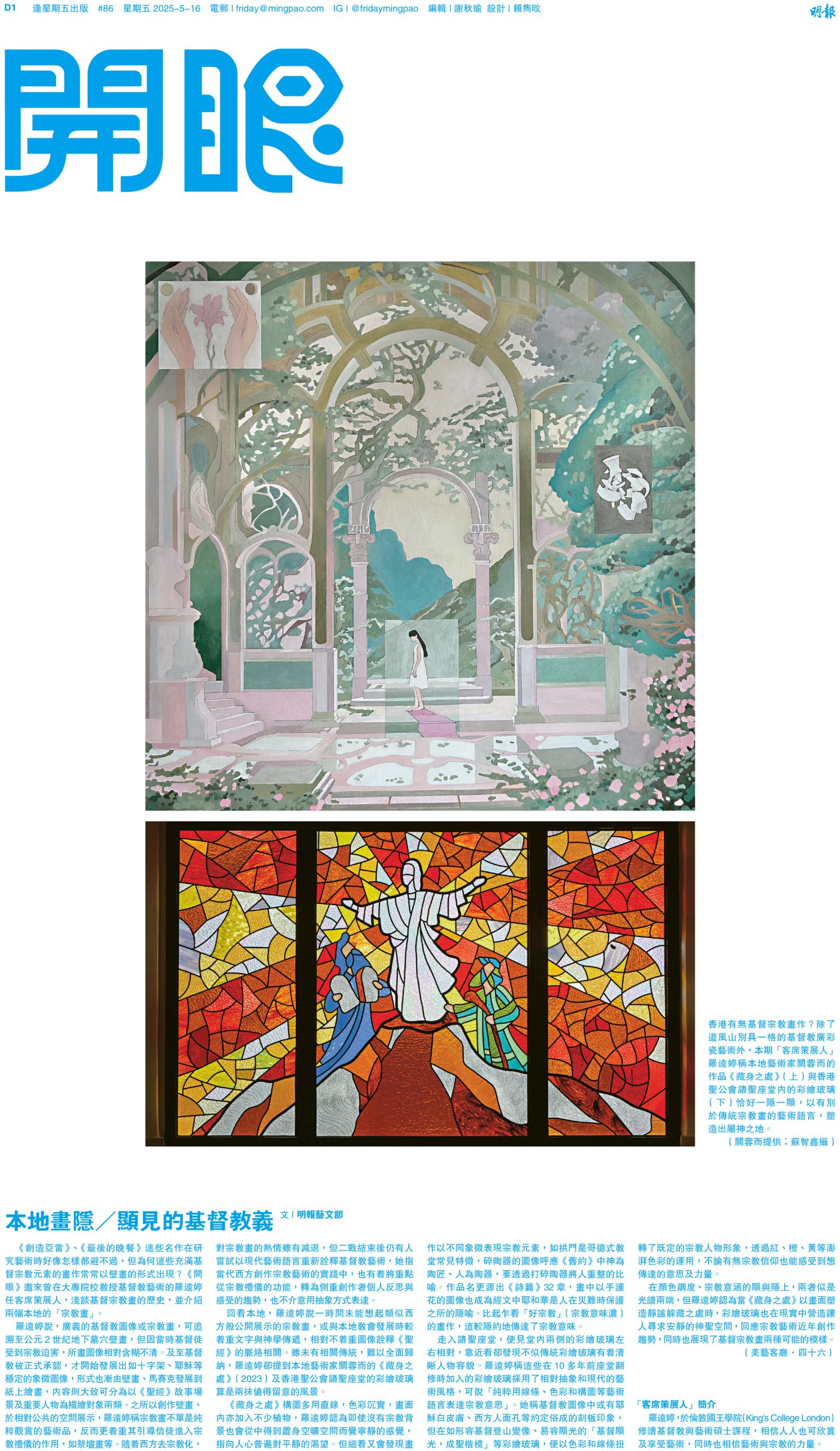 【明報專訊】《創造亞當》、《最後的晚餐》這些名作在研究藝術時好像怎樣都避不過,但為何這些充滿基督宗教元素的畫作常常以壁畫的形式出現?《開眼》邀來曾在大專院校教授基督教藝術的羅遠婷任客席策展人,淺談基督宗教畫的歷史,並介紹兩幅本地的「宗教畫」。