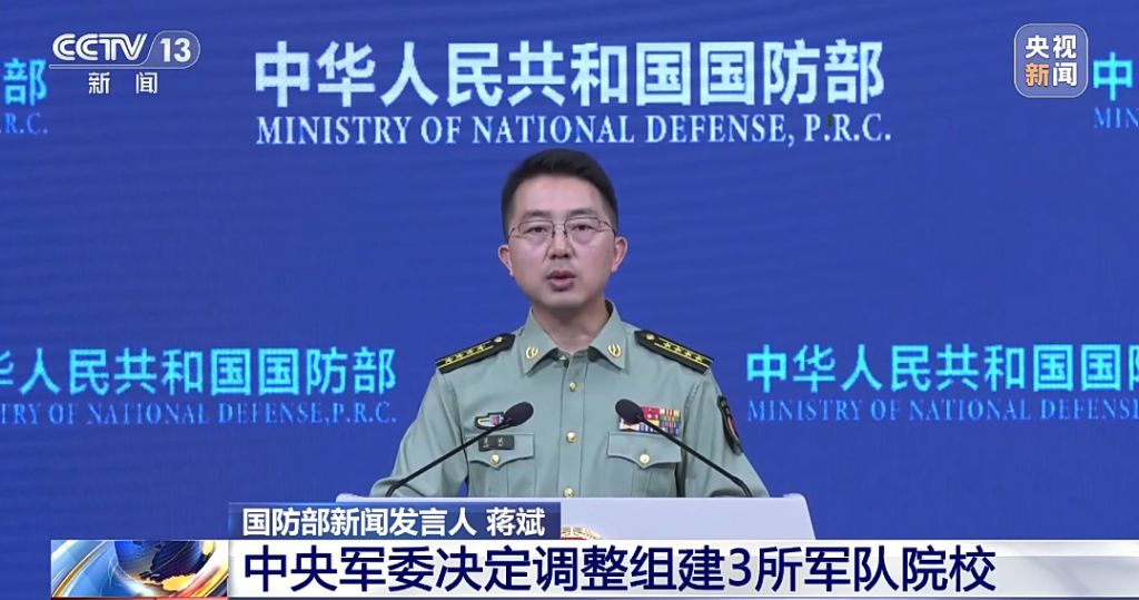 國防部新聞發言人蔣斌大校今(15日)表示,中央軍委決定,調整組建解放軍陸軍兵種大學、解放軍信息支援部隊工程大學、解放軍聯勤保障部隊工程大學等3所院校,均為高等教育院校,面向社會招收普通高中畢業生。
