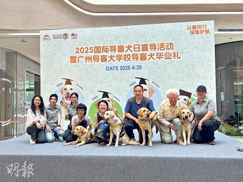 【明報專訊】「Dumbo是我的家人,當我學會信任牠時,黑暗的世界就不再孤單。」上月20日,視障人士肖佳帶着Dumbo出席廣州導盲犬學校的「畢業禮」。除了Dumbo,本屆「畢業生」還包括Bailey、Peace和Perfect,其中Dumbo和Bailey更是來自香港導盲犬協會的交換生,這次「北上就業」,可說是身體力行地將香港的「專業服務」貢獻給大灣區。明報記者