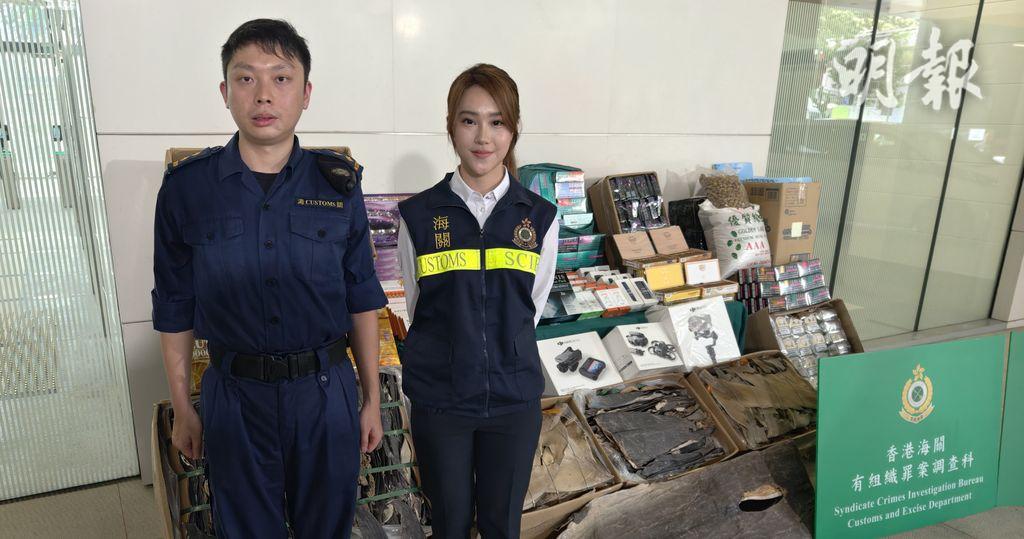 有組織罪案調查科調查主任胡雪兒指,經關員檢查後,發現大批未列艙單及受管制貨物,包括魚翅、乾貨海味、美容針劑、電子零件、煙草及另類吸煙產品等,總市值約2800萬元。當中另類吸煙產品,擺放在印有日用品牌字的紙箱內,企圖偽裝成一般日用品出口。海關會繼續調查貨物來源及最終目的地,不排除有人被捕。