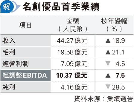 【明報專訊】名創優品(9896)公布,今年首季收入按年增長18.9%至44.27億元(人民幣,下同),其中內地同店銷售降幅收窄至中單位數,但純利下跌28.5%,至約4.16億元,主要受累於1月發行股票掛鈎證券及收購永輝超市股權的銀行貸款,產生其他開支約9107萬元,以及財務成本升4.4倍,至約8595萬元所致。
