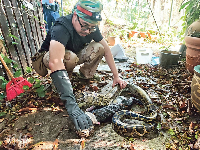 致力動物保育及教育工作的蛇王Ivan說,該雄性緬甸蟒長約2.5米,估計約7歲,當時牠往下斜方向爬行,故需較大力將蛇扯出,希望不會弄傷牠。他說緬甸蟒為受保護物種,經檢查後料會野放。他說本港約有50種蛇,該緬甸蟒或是在大自然難覓食,故走近民居,亦可能被流浪貓狗的氣味吸引。他說緬甸蟒是野豬「天敵」,保護緬甸蟒可控制野豬數量。