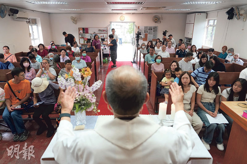 發展局早前延長對古洞北及粉嶺北新發展區受影響住戶的遷出期限至本月或11月,靈合堂這座藍白色建築便屬古洞北餘下發展階段範圍。清拆命運難逃,教會昨日舉行主日崇拜,有數十名教友出席,基督教香港信義會牧師、靈合堂主任陸振耀等人帶領教友頌唱詩歌、低頭默禱。陸於崇拜後受訪,直言今次或是教會最後一次與教友相聚。
