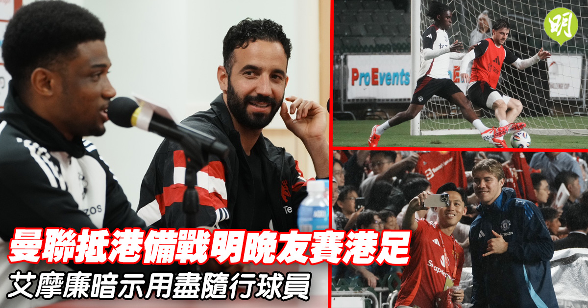 英超球隊曼聯明晚8時將在香港大球場友賽中國香港足球代表隊,曼聯昨晚結束亞洲行的首站後,今午(29日)正式從馬來西亞抵港,其葡萄牙籍領隊魯賓艾摩廉在記者會上表示所有球員皆可上陣,但目前仍未決定最終陣容,「不能單純使用全部年輕球員,也不能只派出球迷期望看到的主力球員」。
