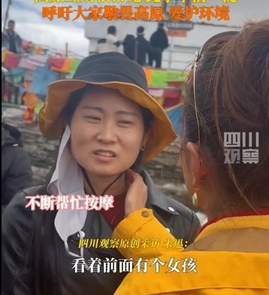 據「大象新聞」報道,事發周三(28日)下午3時許,朱迅一行人在折多山觀景台遇到一名女遊客身體不適,朱迅等人詢問女遊客身體情況,並拿出氧氣瓶協助其吸氧,還為其按壓穴位。