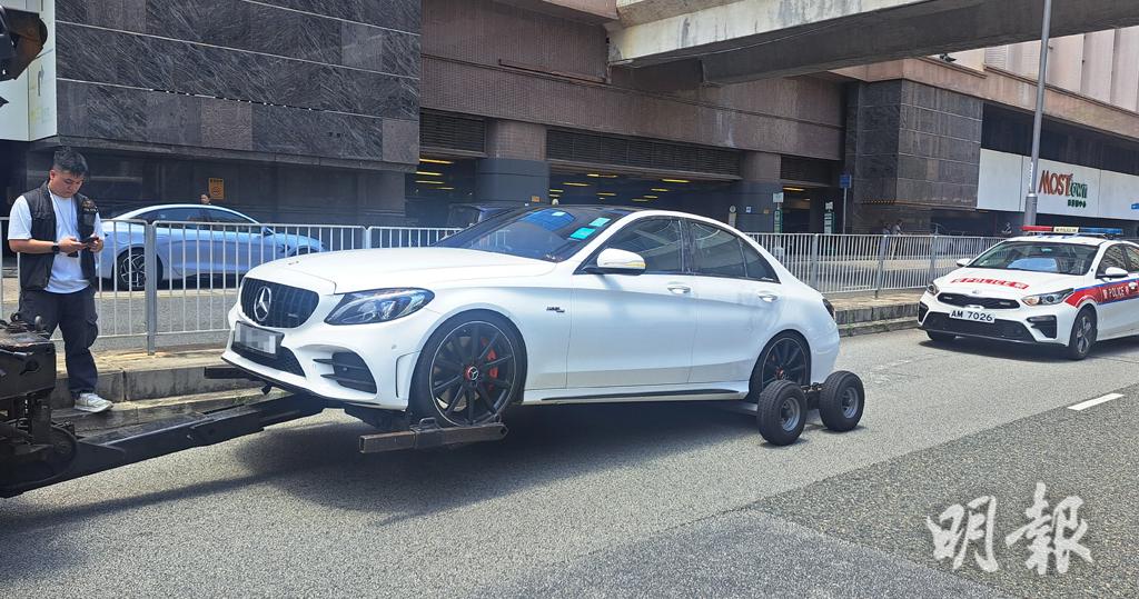 根據網上圖片顯示,警方臨時封鎖鞍䘵街新港城中心對開快線、被截停一輛白色平治私家車,黑布蒙頭男子被探員押至車旁搜證,在商場涉事的珠寶金行亦被圍封,有軍裝警員看守,另亦有探員蒐證。涉事珠寶金行今午已如常營業。據了解,職員接獲指示不可對事件向外透露。