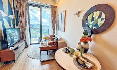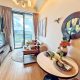 另一現樓示範單位為第1座16樓K室,屬實用面積385方呎1房間隔,以今年度代表色摩卡慕斯色(Mocha Mousse)為主調,加入海岸風格的紫藍色,營造出清爽夏日氛圍。