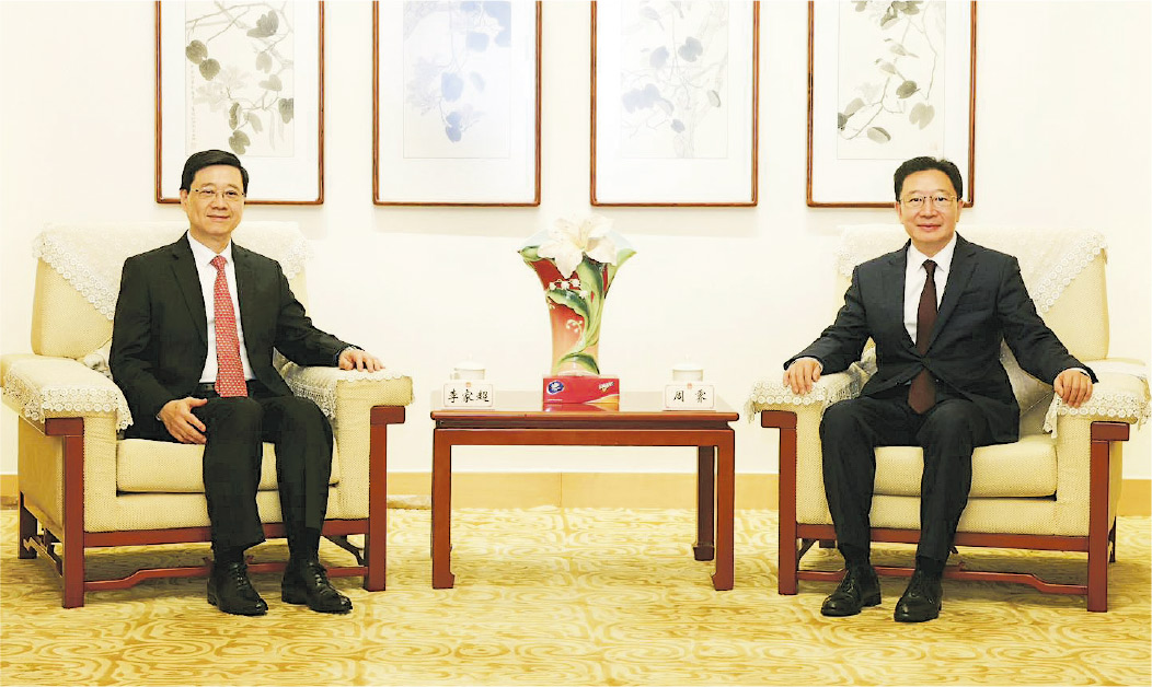 周霽上周六(5月31日)到訪禮賓府與李家超會面,李家超昨早「回訪」中聯辦大樓。周霽重申中聯辦將全面準確、堅定不移貫徹「一國兩制」,落實「愛國者治港」原則,他將依法履責,全力支持和服務香港,以實現更好的發展。