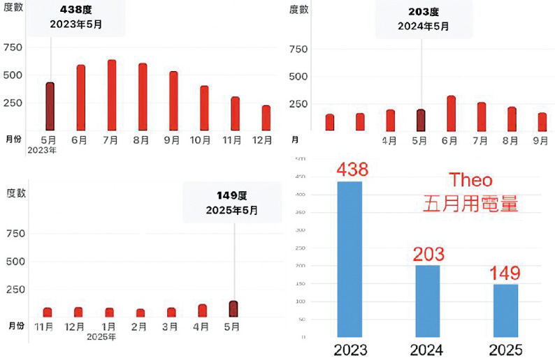 林超英話,網友Theo前日畀佢睇近3年5月嘅電費單,由2023年用電438度,逐步減至去年嘅203度,以及今年5月嘅149度,減幅約66%。佢話實驗證明,將冷氣溫度調校至27℃,加上氣流,其實相當舒服,慳電效果十分顯著。