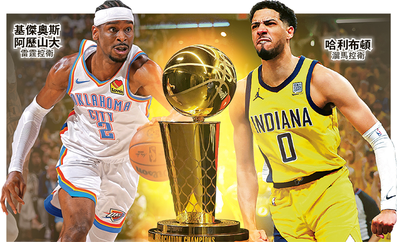 【明報專訊】今屆NBA總決賽將於明早8時半揭開戰幔,由西岸冠軍兼頭號種子的奧克拉荷馬雷霆主場迎戰東岸盟主印第安那溜馬,本次系列賽的一大焦點將是同為星級控衛「SGA」基傑奧斯阿歷山大與哈利布頓的對決,兩軍皆為了首度奪得隊史冠軍而全力奮戰。